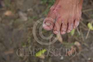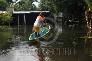 NACAJUCA, TABASCO, 18NOVIEMBRE2020.- La señora María del Carmen Trinidad Frías denuncia que en la ranchería El Guacimo no ha llegado la ayuda, su familia ya enferma, tienen infecciones en los pies. Señalan que se tienen que cuidarse de culebras y lagartos que se han multiplicado por las inundacione. FOTO: CARLOS CANABAL OBRADOR/CUARTOSCURO.COM