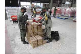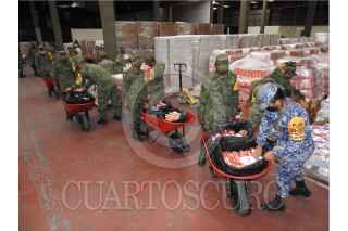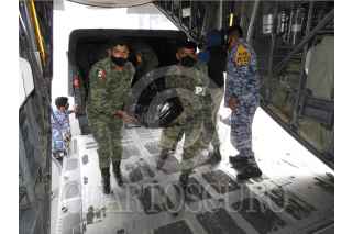 CIUDAD DE MÉXICO, 18NOVIEMBRE2020.- La Secretaría de la Defensa Nacional informa que con motivo de las afectaciones que se han presentado en el estado de Tabasco ocasionadas por las fuertes lluvias, el Ejército y Fuerza Aérea Mexicanos, continúan aplicando el Plan DN-III-E, en su fase de auxilio, trasladando desde la Ciudad de México más de 108 toneladas de víveres (3,500 despensas) a la ciudad de Villahermosa, Tabasco. En el concepto, que cada despensa tiene un peso de 31 kilogramos y están compuestas con productos alimenticios de la canasta básica no perecederos, tales como: frijol, arroz, azúcar, atún en lata, aceite, harina de trigo, harina de maíz, puré de tomate, galletas, sal, pasta para sopa, café soluble y leche en polvo, considerándose que con estos artículos se abastece a una familia (cinco personas promedio), para una sustentabilidad de 20 días. Para el efecto, se movilizaron vehículos de carga del Ejército Mexicano (seis tractocamiones), para trasladar 65.1 toneladas de víveres, partiendo desde el Centro de Acopio de la Secretaría de la Defensa Nacional ubicado en la colonia Aviación Civil de la Ciudad de México, hasta la ciudad de Villahermosa. Por otra parte, se estableció un puente aéreo con cinco aeronaves de transporte de carga de la Fuerza Aérea Mexicana (dos “Hércules” C-130, dos “Casa” C-295 y un “Spartan” C-27J), las que transportaron 43.4 toneladas de estos insumos, despegando desde la Base Aérea Militar No. 19. FOTO: SEDENA/CUARTOSCURO.COM