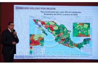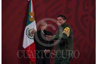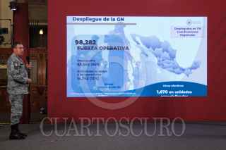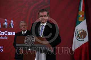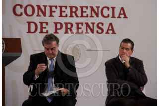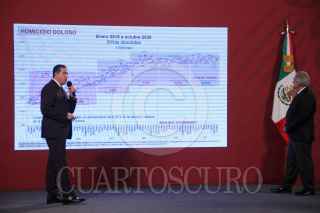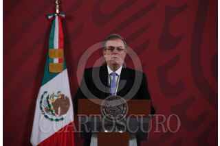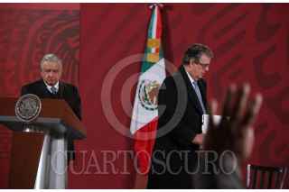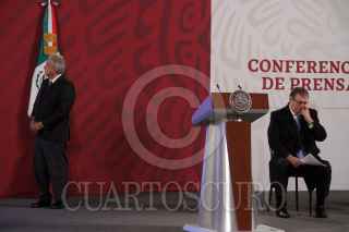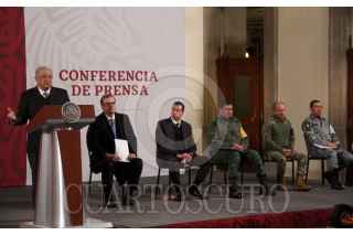 CIUDAD DE MÉXICO, 19NOVIEMBRE2020.- Andrés Manuel López Obrador, presidente de México acompañado de Marcelo Ebrard Casaubon, secretario de Relaciones Exteriores; Ricardo Mejía Berdeja, subsecretario de Seguridad Pública y encargado del despacho titular de la Secretaría de Seguridad y Protección Ciudadana (SSPC); Luis Cresencio Sandoval Gónzalez, secretario de la Defensa Nacional; José Rafael Ojeda Durán, secretario de Marina y Luis Rodríguez Bucio, comandante de la Guardia Nacional durante la conferencia de prensa en Palacio Nacional destacando el tema de seguridad del país. FOTO: ANDREA MURCIA /CUARTOSCURO.COM
