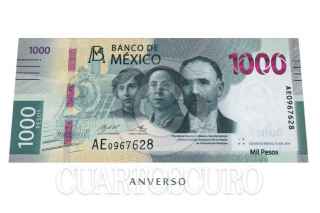 México, 19NOVIEMBRE2020.- El Banco de México informó la circulación de la cuarta denominación de la nueva familia de billetes mexicanos, 1000 pesos. Estará disponible a través del sistema bancario a partir del día de hoy, jueves 19 de noviembre. El diseño en la parte anverso está dedicado al proceso histórico de la Revolución Mexicana con los retratos de Francisco I. Madero, Hermila Galindo y Carmen Serdán. En la parte superior derecha está la denominación multicolor que cambia de tonalidad de magenta a verde. La marca de agua es visible a contraluz, ubicada a la derecha del retrato de Francisco I. Madero. Al reverso, en el diseño se encuentra ecosistema de selvas húmedas, con el jaguar y el edificio principal de la Antigua Ciudad Maya Calakmul. Este billete está fabricado con materiales de última generación, lo que permitirá extender su vida útil en circulación. FOTO: BANCO DE MÉXICO/ CUARTOSCURO.COM