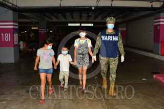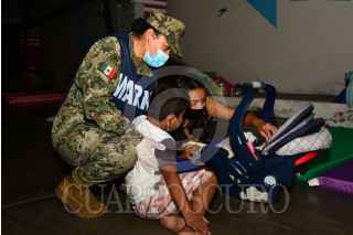 VILLAHERMOSA, TABASCO, 19NOVIEMBRE2020.- La Secretaría de Marina-Armada de México brinda un informe actualizado de las acciones que el personal naval realiza en el marco de la implementación del Plan Marina en los estados de Chiapas y Tabasco, mismos que se han visto afectados por el impacto de fenómenos meteorológicos y donde se mantiene activo en fase de Auxilio; por lo que a la fecha se continúa trabajando para resguardar la integridad de la población civil afectada, en coordinación con los tres órdenes de gobierno. Aunado a lo informado anteriormente, en el estado de Tabasco se mantiene el apoyo para las zonas más afectadas, por los efectos que provocó el “Frente Frío Número 9”, en donde uno de los segmentos poblacionales más afectados son los niños. En este sentido, diversas familias se encuentran refugiadas en albergues temporales en donde el personal naval especialista en el cuidado y desarrollo infantil desde el 8 de noviembre atiende a un promedio de 55 niños al día, con los que trabajan para mantener su salud emocional y mitigar el impacto causado por la situación que viven. El personal naval al cuidado de los niños realiza actividades lúdicas como cantos, carreras y juegos guiados, logrando con ello contribuir a la reducción de los niveles de estrés y generar vínculos afectivos, sociales y emocionales entre ellos. Entre los diversos apoyos que el personal naval mantiene en los municipios de Villahermosa, Centla-Frontera, Tacotalpa, Macuspana y Nacajuca destacan las siguientes acciones: se han evacuado hasta la fecha más de 2 mil 200 personas; distribuido 513 paquetes de limpieza personal, 460 enseres de limpieza, 668 colchonetas, 724 cobertores, 10 mil 400 litros de agua embotellada y repartido 220 mil 767 litros de agua potable transportada en pipas de esta Institución. FOTO: SEMAR/CUARTOSCURO.COM