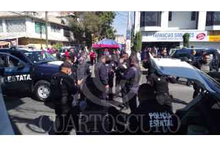 ECATEPEC, ESTADO DE MÉXICO, 19NOVIEMBRE2020.- Taxistas de la agrupación Alianza 2020 se enfrentaron con policías estatales y municipales, en la colonia Las Américas, en la riña un operador murió por un balazo en la cabeza, varios oficiales resultaron heridos, uno de ellos de gravedad, durante la gresca varias patrullas fueron dañadas. Los hechos ocurrieron cuando cerca de 50 taxistas conocidos como "Los Pillos", de la Alianza 2020, destrozaron con palos, bates y piedras seis unidades de la empresa de grúas Sartec, el ataque se debió a que acusan que las grúas se llevan a sus unidades de manera arbitraria. La agresión se registró en las inmediaciones de la Oficialía Calificadora de las Américas, donde tiene su base el Grupo de Operaciones Especiales (GOES) de la policía municipal de Ecatepec, cuyos elemento se percataron de los ataques e iniciaron la persecución de los agresores por la avenida Central. Hubo diversos enfrentamientos; el primero fue en la zona conocida como El Dique, y otro en el cruce de las avenidas Honduras y México, ahí supuestamente los taxistas agredieron a los policías con armas de fuego, lo que provocó que los policías repelieran el ataque provocando la muerte a un operador. Más tarde, los taxistas arremetieron contra patrullas de la policía estatal y municipal, causando lesiones a tres policías municipales, así como el robo de dos armas de fuego oficiales. FOTO: ESPECIAL/CUARTOSCURO.COM