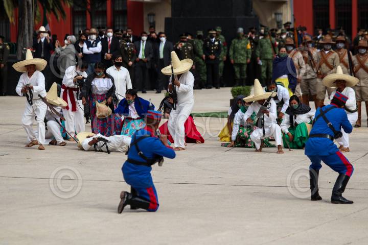 CIUDAD DE MÉXICO, 20NOVIEMBRE2020.- El presidente Andrés Manuel López Obrador encabezó la teatralización con motivo del 110 aniversario del inicio de la Revolución Mexicana en el Monumento a la Revolución. El mandatario acompañado de la investigadora y esposa Beatriz Gutiérrez Müller, así como de los secretarios de la SEDENA, Luis Cresencio Sandoval, y SEMAR, Rafael Ojeda, presenció el desfile que se realizó a puerta cerrada y reducido en elementos que participaron debido a la pandemia por Covid-19. FOTO: GALO CAÑAS/CUARTOSCURO.COM