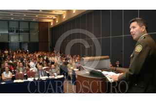MÉXICO D.F. 13 JUNIO2006.- Un policía que asistió al foro Internacional "Narco Menudeo Acciones y Reflexciones" duerme, mientra se los ponenetes exponen sus temas acerca de la problematica del narco menudeo. FOTO: Guillermo Perea/CUARTOSCURO.COM