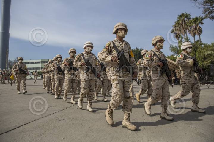 TIJUANA, BAJA CALIFORNIA, 20NOVIEMBRE2020.- Se realizó el Izamiento de Bandera y Ascensos en el Cuartel Morelos de la Segunda Zona MIlitar. FOTO: OMAR MARTÍNEZ /CUARTOSCURO.COM