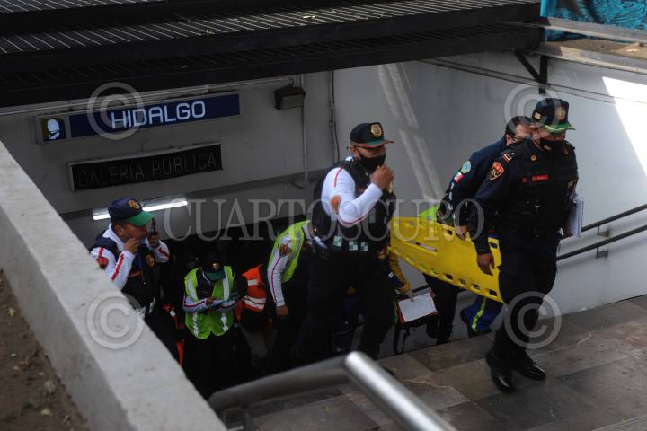 CIUDAD DE MÉXICO, 20NOVIEMBRE2020.- Un hombre resultó lesionado al ser golpeado por el convoy del metro en la estación Hidalgo de la Línea 2, por no respetar el límite que marca la línea amarilla en los andenes. El hombre de aproximadamente 30 años fue trasladado al hospital Rubén Leñero con lesiones en cráneo. FOTO: LUIS CARBAYO /CUARTOSCURO.COM