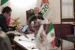 CIUDAD DE MÉXICO, 21NOVIEMBRE2020.- Andrés Manuel López Obrador, presidente de México, participó de manera virtual en la Cumbre del G20 donde expresó su posicionamiento del gobierno mexicano ante la crisis mundial y la pandemia por Covid-19. FOTO: PRESIDENCIA/CUARTOSCURO.COM