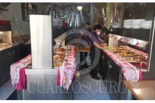 CIUDAD DE MÉXICO, 22NOVIEMBRE2020.- Debido a la pandemia los restaurantes tipo buffet han cambiado su manera de ofrecer su servicio, ya que anteriormente las personas se podría servir directamente los platillos, y ahora un mesero, protegido con cubrebocas y careta, les sirve al cliente lo que apetezca. FOTO: MOISÉS PABLO/CUARTOSCURO.COM