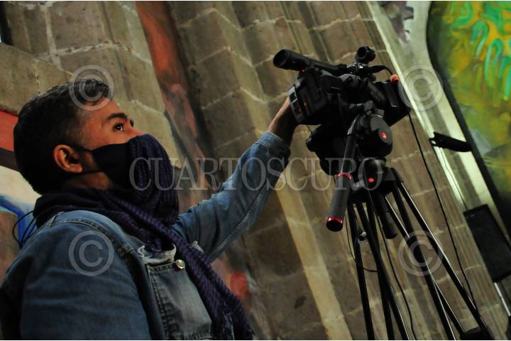 CIUDAD DE MÉXICO, 23NOVIEMBRE2020.- Periodistas utilizan cubrebocas para prevenir contagiarse con Covid-19 durante sus coberturas diarias. FOTO: DANIEL AUGUSTO /CUARTOSCURO.COM