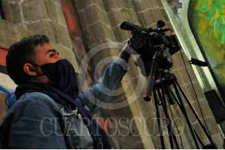CIUDAD DE MÉXICO, 23NOVIEMBRE2020.- Periodistas utilizan cubrebocas para prevenir contagiarse con Covid-19 durante sus coberturas diarias. FOTO: DANIEL AUGUSTO /CUARTOSCURO.COM