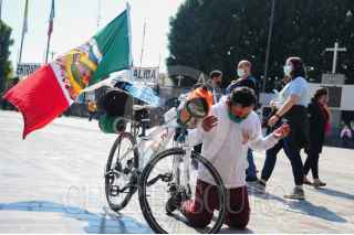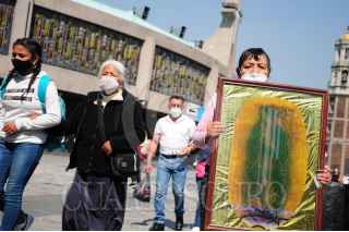 CIUDAD DE MÉXICO, 24NOVIEMBRE2020.- Decenas de personas asisten a la Basílica de Guadalupe para agradecer los favores y los cumplimientos de sus peticiones que les otorgó a lo largo del año, personas arrodilladas o con figuras religiosas en las manos, se acercan al atrio de la Basílica para rezar y hablar con la Virgen de Guadalupe. El próximo 12 de diciembre, las puertas de este recinto estarán cerradas debido a la presencia de la pandemia de Covid-19 y con el fin de evitar aglomeraciones y contagios de coronavirus. FOTO: DANIEL AUGUSTO /CUARTOSCURO.COM