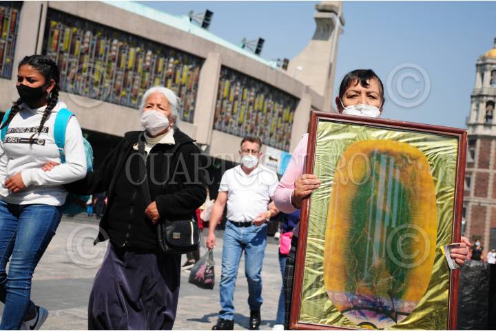 CIUDAD DE MÉXICO, 24NOVIEMBRE2020.- Decenas de personas asisten a la Basílica de Guadalupe para agradecer los favores y los cumplimientos de sus peticiones que les otorgó a lo largo del año, personas arrodilladas o con figuras religiosas en las manos, se acercan al atrio de la Basílica para rezar y hablar con la Virgen de Guadalupe. El próximo 12 de diciembre, las puertas de este recinto estarán cerradas debido a la presencia de la pandemia de Covid-19 y con el fin de evitar aglomeraciones y contagios de coronavirus. FOTO: DANIEL AUGUSTO /CUARTOSCURO.COM