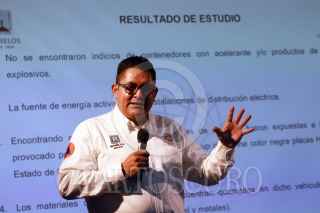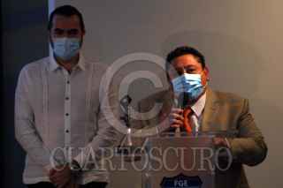CUERNAVACA, MORELOS, 24NOVIEMBRE2020.- Conferencia de prensa conjunta de la Fiscalía de Morelos y la Secretaria de Gobierno para informar con términos científicos que la muerte del médico que falleció calcinado el fin de semana en Zacatepec, sí fue por intoxicación aguda por inhalación de monóxido de carbono, no hubo lesiones externas por algún tipo de arma. En la conferencia estuvo presente el secretario de gobierno, Pablo Ojeda, y el fiscal Uriel Carmona, quienes desmintieron las versiones de una ejecución contra el medico antes de ser calcinado. FOTO: MARGARITO PÉREZ RETANA/CUARTOSCURO.COM