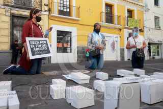 PUEBLA, PUEBLA, 24NOVIEMBRE2020.- Mujeres integrantes del Frente Nacional por al familia, rezaron frente al Congreso del Estado manifestando su postura en contra de la legalización del aborto. FOTO: MIREYA NOVO/CUARTOSCURO.COM