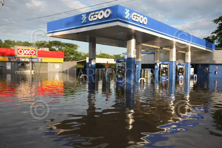 TENOSIQUE, TABASCO, 24NOVIEMBRE2020.- Un vado de 45 centímetro y 100 metros de tirantes dificulta la circulación en las inmediaciones del ejido Crisoforo Chiras a tres kilómetros de llegar a la cabecera municipal, lo cual debido a la creciente del río Usumacinta. Igual una de las tres gasolineras se encuentra sin servicios debido a inundaciones. FOTO: CARLOS CABAL OBRADOR/CUARTOSCURO.COM
