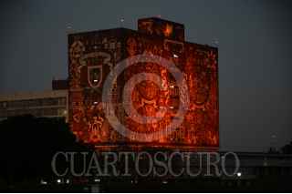 CIUDAD DE MÉXICO, 24NOVIELBRE2020.- Iniciaron en la UNAM las más de 150 actividades para conmemorar el Día Internacional para la Erradicación de la Violencia contra las Mujeres, que se conmemora mañana, con la iluminación en color Naranja de la Biblioteca Central. El simbólico edificio se “pintó” de naranja, al igual que el Estadio Olímpico de CU y este miércoles empezarán las conferencias y charlas, entre otras actividades, que se suman a la gran multiplicidad de eventos que la Universidad Nacional realiza para prevenir, combatir y eliminar todas las formas de violencia y desigualdad por razones de género. El color naranja hace referencia al de las mariposas, como se les conoce a las 3 hermanas Mirabal (Patricia, Minerva y María Teresa,) que fueron asesinadas y cuya lucha se convirtió en un símbolo para el también llamado Día Naranja. FOTO: UNAM/CUARTOSCURO.COM