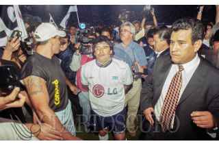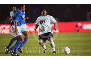 Buenos Aires, Argentina, 25noviembre2020.-El astro del fútbol, Diego Armando Maradona murió a los 60 años, víctima de un paro cardiaco, en su residencia en la provincia de Buenos Aires. Las fotografías corresponden al partido amistoso, para anunciar el retiro del futbolista mexicano Carlos Hermosillo, jugado en 2002.- FOTO: ARCHIVO / PEDRO MERA / CUARTOSCURO.COM