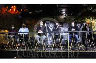 CIUDAD DE MÉXICO, 25NOVIEMBRE2020.- Carlos Ram, vicepresidente ejecutivo y de relaciones estatales, Helking Aguilar, presidente de la Asociación de Bares, Discotecas, y Centros Nocturnos y Nicolás Grauvi, vicepresidente de seguridad y operaciones, durante la conferencia de prensa en donde informaron su interés por agendar una mesa de diálogo con el gobierno de la ciudad tras la cancelación del programa "Reeabre" el cual ha dejado pérdidas en estos negocios de más de 300 mil pesos, entre materiales y modificaciones para la operación bajo la nueva normalidad, sumando el pagos de nóminas. FOTO: ROGELIO MORALES /CUARTOSCURO.COM