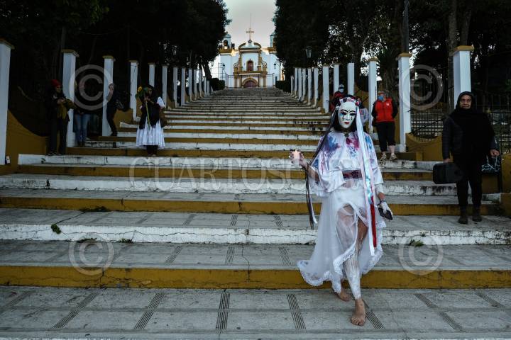 SAN CRISTÓBAL DE LAS CASAS, CHIAPAS, 25NOVIEMBRE2020.- En el marco del Día internacional de la eliminación de la violencia contra la mujer, dos mujeres artistas realizaron una intervención artística en el espacio público en el andador turístico de Guadalupe en el centro de la ciudad. El performance fue dedicado a todas la mujeres que han sido asesinadas y violentadas por hombres bajo un sistema machista y patriarcal. FOTO: ISABEL MATEOS /CUARTOSCURO.COM