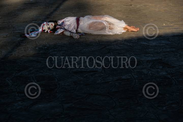 SAN CRISTÓBAL DE LAS CASAS, CHIAPAS, 25NOVIEMBRE2020.- En el marco del Día internacional de la eliminación de la violencia contra la mujer, dos mujeres artistas realizaron una intervención artística en el espacio público en el andador turístico de Guadalupe en el centro de la ciudad. El performance fue dedicado a todas la mujeres que han sido asesinadas y violentadas por hombres bajo un sistema machista y patriarcal. FOTO: ISABEL MATEOS /CUARTOSCURO.COM