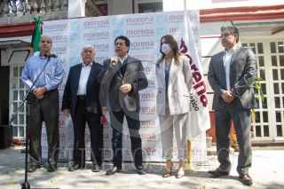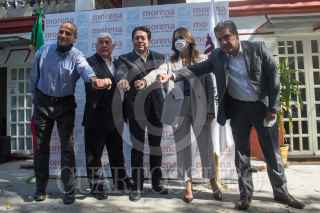 CIUDAD DE MÉXICO, 25NOVIEMBRE2020.- Mario Delgado, dirigente nacional de Morena, se reunió con los cuatro aspirantes de Morena a la gubernatura de Nuevo León: Rafael Zarazúa, Fernando Ábrego, Clara Luz Flores y Mario Fernández. Los suspirantes previó a la conferencia de prensa sostuvieron una reunión para definir los mecanismos de elección del candidato morenista. FOTO: MOISÉS PABLO/CUARTOSCURO.COM