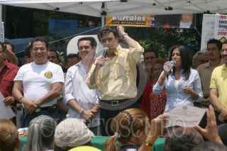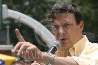 MEXICO, D. F. 18JUNIO2006.- Después de dos horas de retraso Marcelo Ebrard Casaubom, candidato del PRD a la jefatura de gobierno del D.F. dirige su mensaje de campaña a vecinos de la delegación Benito Juárez. FOTO: Nelly Salas/CUARTOSCURO