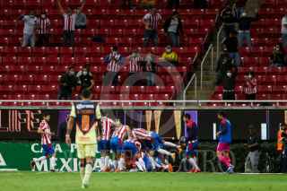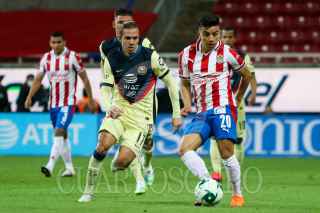 ZAPOPAN, JALISCO, 26NOVIEMBRE2020.- Las Chivas del Guadalajara se impusieron a las Águilas del América 1-0, con gol de Cristian Calderón, en partido de ida de los Cuartos de Final del Torneo Guard1anes 2020 de la Liga BBVA MX, celebrado en el estadio Akron. FOTO: IMAGO 7/LIGA MX/Fabián Meza/CUARTOSCURO.COM