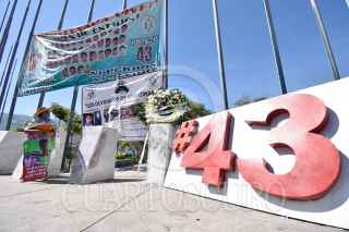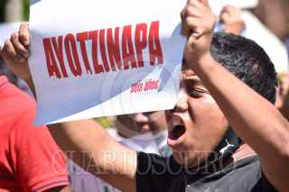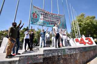 CHILPANCINGO, CIUDAD DE MÉXICO, 26NOVIEMBRE2020.- A 74 meses de la desaparición de los estudiantes de la Escuela Normal Rural de Ayotzinapa "Raúl Isidro Burgos", integrantes de distintas organizaciones demandaron a las autoridades federales enjuiciar a los mandos militares detenidos por el caso de los 43. Francisco Echeverría de Jesús, representante del Colectivo "Los Olvidados de Ayotzinapa" criticó nuevamente que los detenidos implicados en el caso, no han sido procesados por el caso Ayotzinapa, y en específico por la desaparición de los jóvenes el 26 y 27 de septiembre de 2014. Pidió que cese la corrupción e impunidad y que los mandos militares detenidos recientemente sean enjuiciados y revelen de una vez el paradero de los 43 para aliviar el dolor de las madres y padres de esos estudiantes. El representante de la Normal Rural de Ayotzinapa, manifestó que el Gobierno de la Cuarta Transformación le ha fallado al movimiento social, sigue sin revelar el destino final de los 43 y tampoco ha hecho justicia a los tres estudiantes asesinados en la noche de Iguala. En este mitin participaron también miembros del Sindicato de CICAEG, de la Universidad Pedagógica Nacional (UPN), así como las organizaciones que conforman la Dirección Colectiva, quienes reiteraron su solidaridad con el movimiento de padres y madres de los 43. El mitin fue encabezado por el colectivo "Los Olvidados de Ayotzinapa", que integran familiares de los nueve estudiantes de esta normal asesinados en diferentes hechos del 2011 a la fecha, quienes demandan justicia y castigo a los culpables. La actividad se desarrolló en medio de consignas en memoria de los asesinados y desaparecidos en el antimonumento colocado en la Glorieta de Las Banderas, la cual culminó con la entonación del himno "venceremos". FOTO: DASSAEV TÉLLEZ ADAME/ CUARTOSCURO.COM