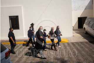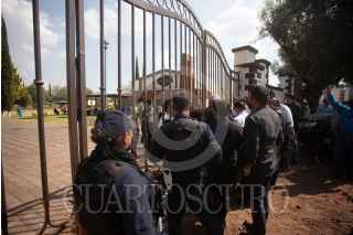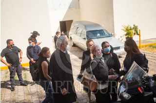 MORELIA, MICHOACÁN. 24NOVIEMBRE2020. Los funerales de José Manuel Mireles Valverde, exlíder de las autodefensas de Michoacán se realizaron entre pleitos familiares entre su viuda y sus hijos, así como su exesposa. El cuerpo del también delegado del Instituto de Servicios de Seguridad Social de los Trabajadores del Estado (ISSSTE) se llevó al cementerio Jardines de la Concordia escoltado por dos patrullas de la Policía Michoacán, con el fin de cremarlo, en el lugar sólo se permitió el acceso a unas cuantas personas. Entre los que ingresaron al sitio estuvieron su viuda Estefanía Valdés, la exesposa Ana Valencia y el hijo del difunto, Alejandro Mireles, quienes tuvieron una discusión por el destino que tendrán las cenizas. FOTO: JUAN JOSÉ ESTRADA SERAFÍN/ CUARTOSCURO.COM