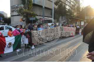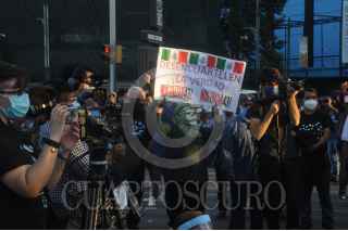 CIUDAD DE MÉXICO, 26NOVIEMBRE2020.- Familiares de los desaparecidos de Ayotzinapa, se manifestaron en el monumento a los 43 en Paseo de la Reforma. FOTO: LUIS CARBAYO/ CUARTOSCURO.COM