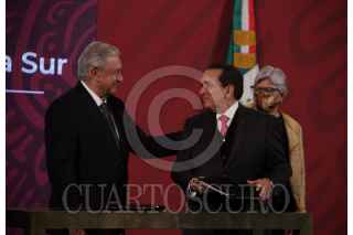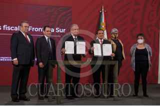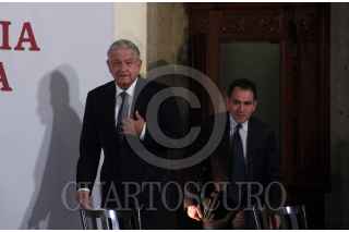 CIUDAD DE MÉXICO, 27NOVIEMBRE2020.- Andrés Manuel López Obrador, presidente de México acompañado de Graciela Márquez, secretaria de Economía; Arturo Herrera, secretario de Hacienda y Crédito público; Raquel Buenrostro, titular del SAT y Carlos Romero Aranda, Procurador Fiscal de la Federación SHCP, durante la conferencia matutina. FOTO: ANDREA MURCIA /CUARTOSCURO.COM
