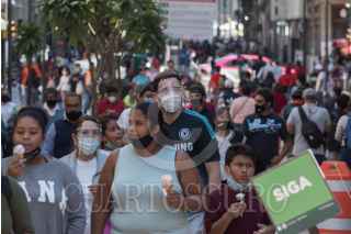 CIUDAD DE MÉXICO, 27NOVIEMBRE2020.- Continúan las grandes concentraciones de personas en las principales calles del centro histórico, pese a continuar activo semáforo naranja con alerta debido a la pandemia de Covid-19. FOTO: MARIO JASSO/CUARTOSCURO.COM