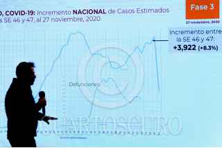 CIUDAD DE MÉXICO, 25NOVIEMBRE2020.- Ruy López Ridaura, director general de Cenaprece, y Ricardo Cortés Alcalá, titular de la Dirección General de Promoción de la Salud, durante conferencia de prensa para informar sobre la actualización de datos de la pandemia de coronavirus (covid-19) en el país que indica: 1,090,675 casos confirmados y 104,874 defunciones. FOTO: MARIO JASSO /CUARTOSCURO.COM
