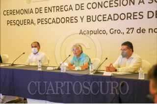 ACAPULCO, GUERRERO, 27NOVIEMBRE2020.- La secretaria de Gobernación, Olga Sánchez Cordero, presidió la entrega de título de concesión a la Unión de Pescadores y Buceadores de Puerto Marqués. Durante la entrega, la secretaria de Gobernación estuvo acompañada del titular de la Subsecretaría de Desarrollo Democrático, Participación Social y Asuntos Religiosos, Rabindranath Salazar Solorio; el gobernador del estado, Héctor Astudillo Flores; y el coordinador de Memoria Histórica y Cultural de México, Eduardo Villegas Megías. FOTO: CUARTOSCURO.COM
