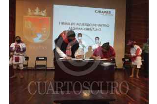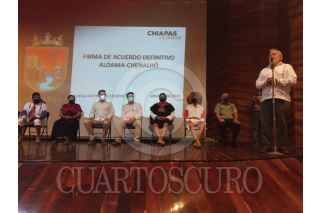 TUXTLA GUTIERREZ, CHIAPAS, 27NOVIEMBRE2020.- El subsecretario de Derechos Humanos, Población y Migración, Alejandro Encinas Rodríguez, firmó el Acuerdo definitivo que resuelve el problema agrario para los municipios de Aldama y Chenalhó, Chiapas, y el cual atiende y repara a las víctimas que por más de cuatro décadas vivieron en tensión por este tema.Ante el gobernador de ese estado, Rutilio Escandón Chiapas, las autoridades constitucionales y tradicionales de los municipios de Aldama y Chenalhó, así como la presidenta y el presidente municipales, autoridades electas por usos y costumbres, y representantes de las comunidades, el subsecretario Alejandro Encinas Rodríguez reconoció el esfuerzo de las dos comunidades para construir este acuerdo que implicó ceder en ambas partes y destacó el trabajo del secretario general de gobierno del estado, Ismael Brito Mazariegos, como un actor fundamental en la negociación. FOTO: CUARTOSCURO.COM
