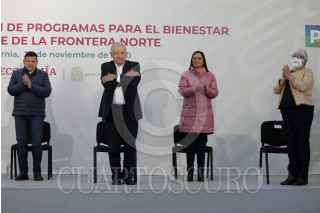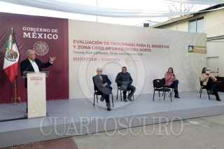 TECATE, BAJA CALIFORNIA, 27NOVIEMBRE2020.- Andrés Manuel López Obrador, presidente de México, encabezó la evaluación de Programas para el Bienestar y Zona Libre de la Frontera Norte acompañado de Jaime Bonilla Valdez, gobernador de Baja California; Javier May Rodríguez, secretario de Bienestar; Ariadna Montiel Reyes, subsecretaria de Desarrollo Social y Humano; Graciela Márquez Colín, secretaria de Economía y Olga Zulema Adams Pereyra, presidenta municipal de Tecate. FOTO: PRESIDENCIA/CUARTOSCURO.COM