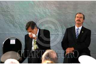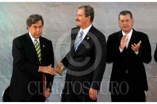 MEXICO, D.F. 19JUNIO2006.- Cuauhtemoc Cádenas saluda al presidente Vicente Fox durante la sesión de la instalación del 2010, Año del Bicentenario del Inicio de la Revolución Mexicana. FOTO: Nelly Salas/CUARTOSCURO.COM