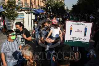CIUDAD DE MÉXICO, 28NOVIEMBRE2020.- Continúan las grandes concentraciones de personas en las calles del centro histórico, esto pese a continuar activo semáforo epidemiológico en color naranja con alerta a cambio color rojo, debido a la pandemia de Covid-19. FOTO: ROGELIO MORALES /CUARTOSCURO.COM