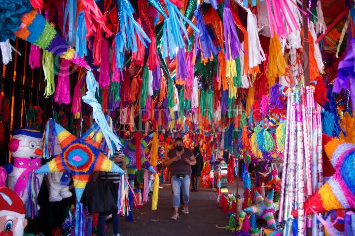 CIUDAD DE MÉXICO, 28NOVIEMBRE2020.- Comienzan las compras navideñas en el mercado Sonoro conocido por vender artículos de todo tipo para las fechas decembrinas, como pinos de navidad, esferas, piñatas y materia prima para las cenas y posadas. FOTO: ANDREA MURCIA /CUARTOSCURO.COM