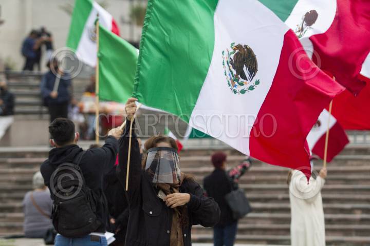 MONTERREY, NUEVO LEÓN. 28NOVIEMBRE2020.- Alrededor de 100 miembros del Frente Nacional AntiAmlo (Frena) se manifestó en el centro de la ciudad y en el que invitaron a la sociedad a un paro económico nacional. FOTO: GABRIELA PÉREZ MONTIEL / CUARTOSCURO.COM