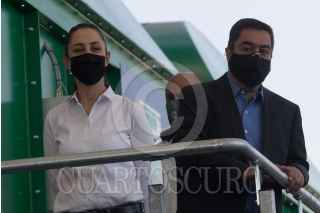 CIUDAD DE MÉXICO, 29NOVIEMBRE2020.- Claudia Sheinbaum Pardo, Jefa de Gobierno; Vidal Llerenas, alcalde de Azcapotzalco, y Jesús Esteva Medina, secretario de Obras, durante la explicación de funcionamiento de la Estación de Transferencia y Planta de Selección Azcapotzalco. FOTO: MOISÉS PABLO/CUARTOSCURO.COM