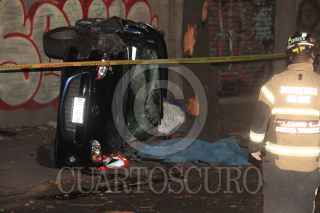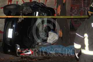Ciudad de México, 30 noviembre 2020. Dos hombres perdieron la vida al volcar el auto Mazda en que viajaban e impactaran contra un árbol, en avenida Aquiles Serdán entre Ernesto Elurdoy y Nextengo en la colonia Nextengo en alcaldía de Azcapotzalco. Foto: Luis Carbayo/cuartoscuro.com