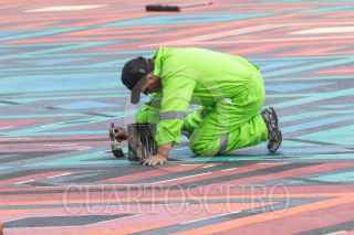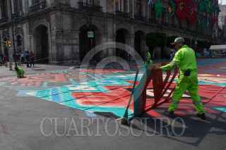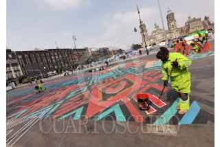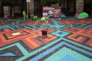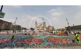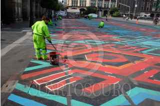 CIUDAD DE MÉXICO, 30NOVIEMBRE2020.- Trabajadores iniciaron con la pinta de la gran franja peatonal en la parte sur de la Plaza de la Constitución. Esta zona ocupará cuatro carriles de los seis que hay actualmente, y correrá de 16 de Septiembre a Pino Suárez, este proyecto fue presentado por la Jefa de Gobierno, en su pasado informe. El actual gobierno inició la semipeatonalización del Zócalo restringiendo la circulación vehicular durante los fines de semana, desde las 15 horas del viernes hasta el domingo, como una primera prueba piloto. FOTO: MOISÉS PABLO/CUARTOSCURO.COM