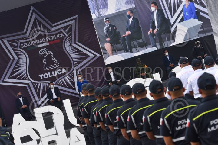 TOLUCA, ESTADO DE MÉXICO, 30NOVIEMBRE2020.- 400 cadetes se graduaron este día en el municipio de Toluca integrándose al cuerpo policial de este municipio, el cual cuenta ya con 2500 oficiales de seguridad, vialidad y cadetes. FOTO: CRISANTA ESPINOSA AGUILAR /CUARTOSCURO.COM