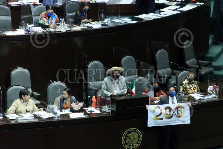 CIUDAD DE MÉXICO, 01DICIEMBRE2020.- Sesión ordinaria semipresencial de la Cámara de Diputados en la que se realizó la efeméride con motivo del CI Aniversario Luctuoso del General Felipe de Jesús Ángeles Ramírez, y se someten a discusión diversos dictámenes de las comisiones de gobernación y población; de relaciones exteriores; seguridad pública; economía, comercio y competitividad. FOTO: MARIO JASSO/CUARTOSCURO.COM