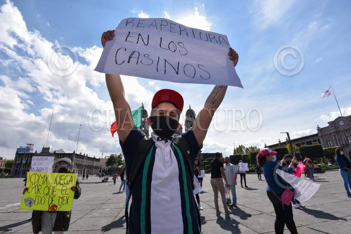 TOLUCA, ESTADO DE MÉXICO, 01DICIEMBRE2020.- Trabajadores de casinos en el Estado de México se manifestaron frente a Palacio de Gobierno para exigir la reapertura de estos negocios los cuales han estado cerrados desde el mes de abril por la pandemia por COVID-19. FOTO: CRISANTA ESPINOSA AGUILAR /CUARTOSCURO.COM
