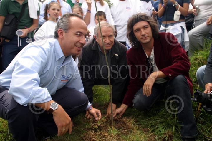 MEXICO, D.F., 19JUNIO2006.- Felipe Calderòn, candidato a la presidencial del PAN, plantó arboles en el Parque Ecològico de la col. Ex Hacienda Tarango. Lo acompaño la actriz Sherlyn a el evento. FOTO: Moisés Pablo/CUARTOSCURO.COM