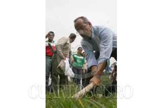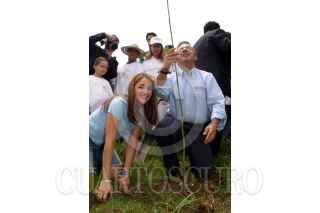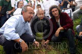 MEXICO, D.F., 19JUNIO2006.- Felipe Calderòn, candidato a la presidencial del PAN, plantó arboles en el Parque Ecològico de la col. Ex Hacienda Tarango. Lo acompaño la actriz Sherlyn a el evento. FOTO: Moisés Pablo/CUARTOSCURO.COM