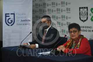 CIUDAD DE MÉXICO, 01DICIEMBRE2020.- Ernestina Godoy, Fiscal General de la Ciudad de México, y Omar García Harfuch, secretario de Seguridad Ciudadana, ofrecieron una conferencia de prensa para dar detalles de las investigaciones del asesinato del ciudad francés Baptiste Jacques Daniel Lormand, y del mexicano Luis Orozco, empresario restaurantes. FOTO: CRISTIAN HERNÁNDEZ/CUARTOSCURO.COM