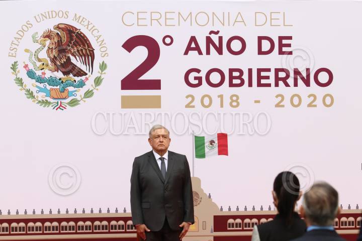 CIUDAD DE MÉXICO, 01DICIEMBRE2020.- Andrés Manuel López Obrador, Presidente Constitucional de los Estados Unidos Mexicanos, ofreció su segundo informe de Gobierno, en Palacio Nacional. Lo compañaron una pequeña comitiva integrantes de su gabinete, empresario, y representantes del poder judicial y legislativo. FOTO: GRACIELA LÓPEZ/CUARTOSCURO.COM
